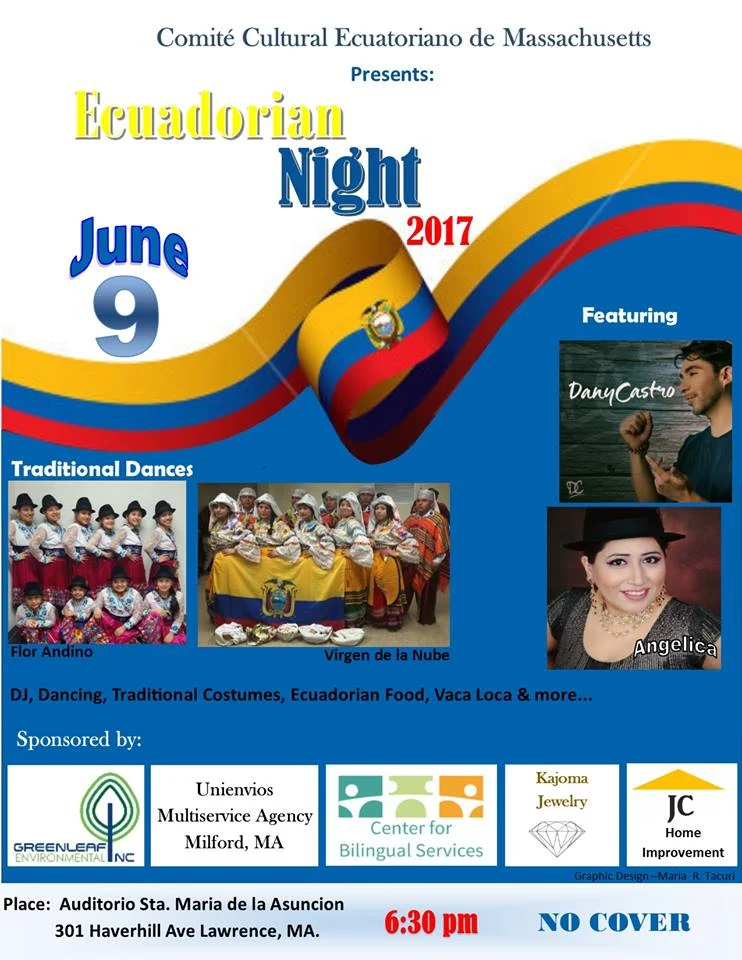 This Friday evening, there is an Ecuadorian cultural event in Lawrence, MA, sponsored by the Ecuadorian communities of Massachusetts. If you are interested in going, please contact me.
